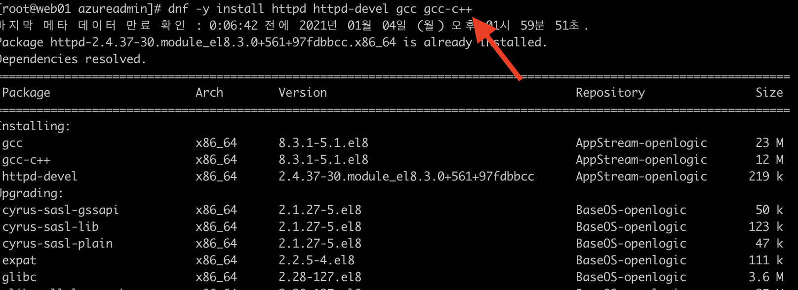 3) 아파치와 톰캣을 연동할 mod_jk 모듈을 사용하기 위해 필요한 패키지 설치
