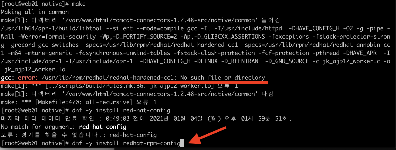 cd tomcat-connectors-1.2.48.src/native/ 에서 아래의 명령어 실행