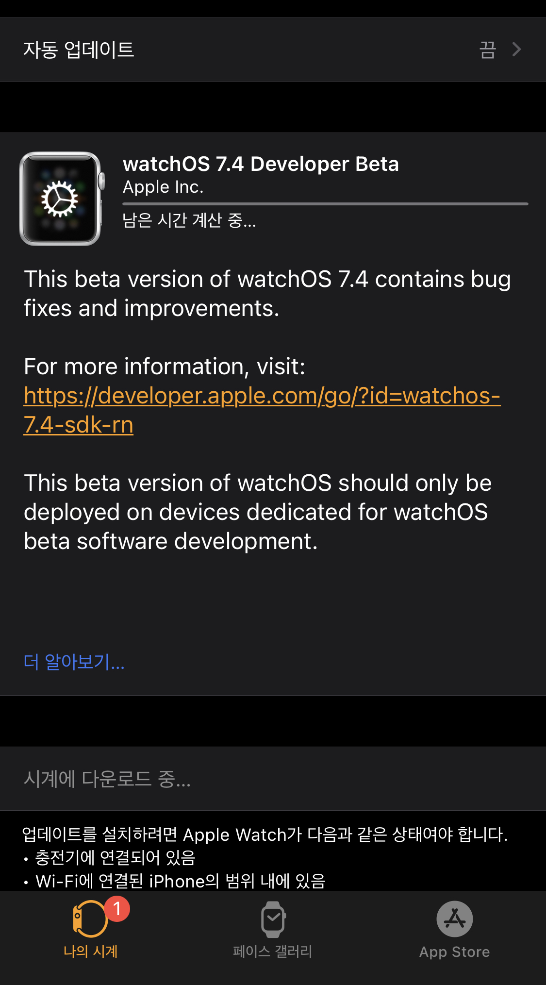 2. Watch OS 7.4 Beta 다운로드