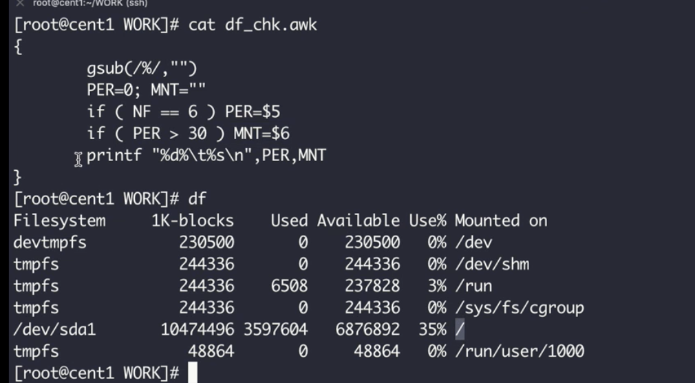 텍스트파일이나 명령 실행결과에서 원하는 필드를 출력할 때 사용