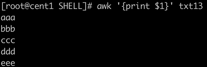 - awk '{print $1}' txt13 => 첫번째 필드 출력