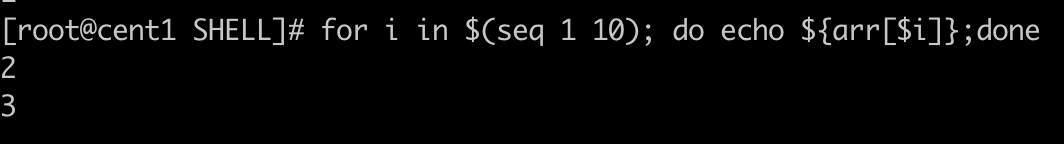 - for i in $(seq 0 10) ;do echo ${배열[${i}]} ;done