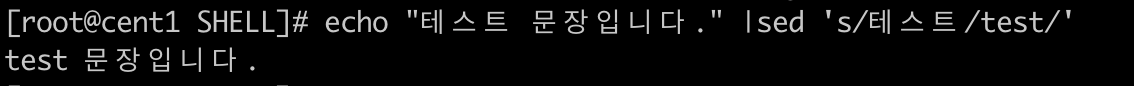 - echo "테스트 문장입니다." | sed 's/테스트/test/'