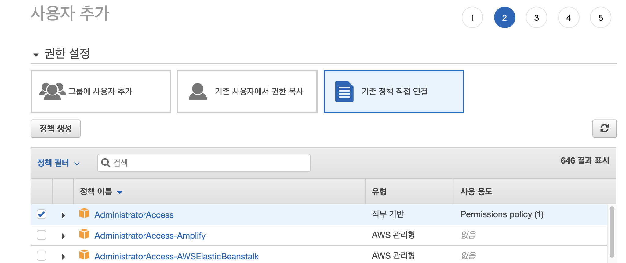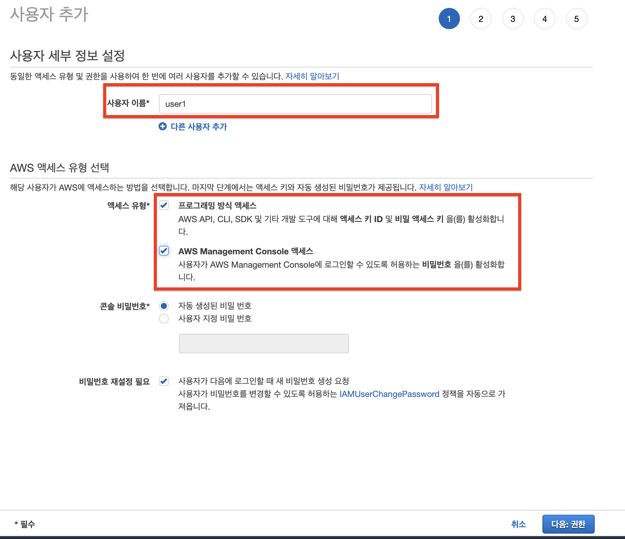 3. 권한 설정 후 사용자 생성