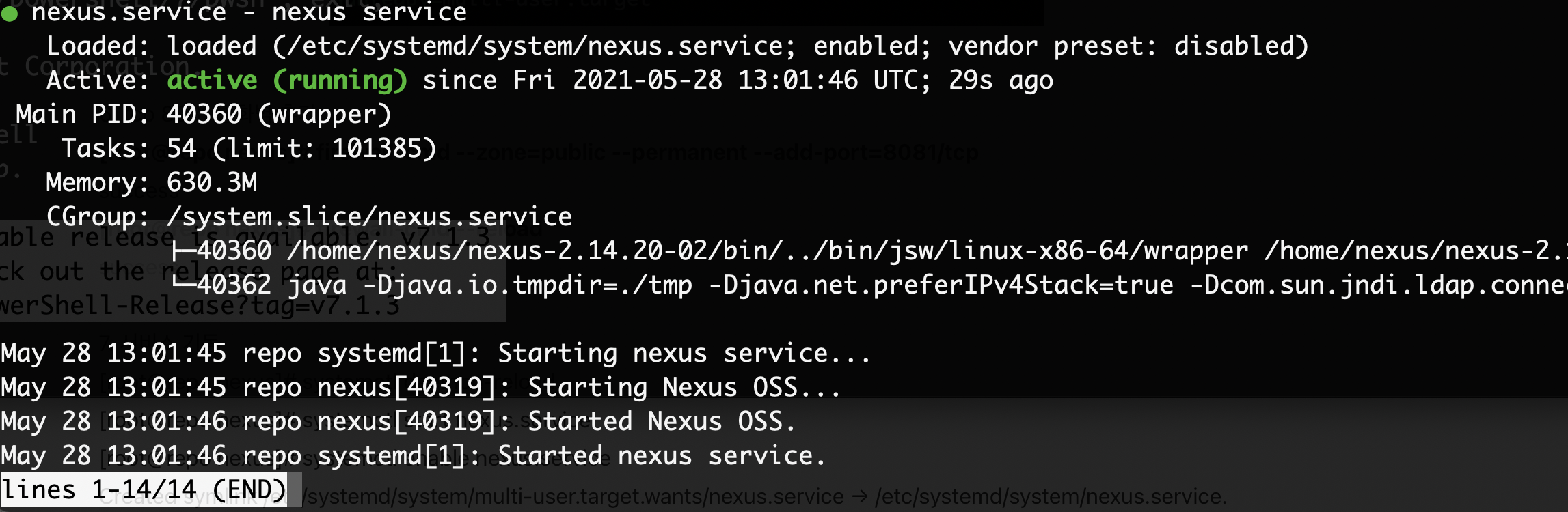 Created symlink /etc/systemd/system/multi-user.target.wants/nexus.service → /etc/systemd/system/nexus.service.