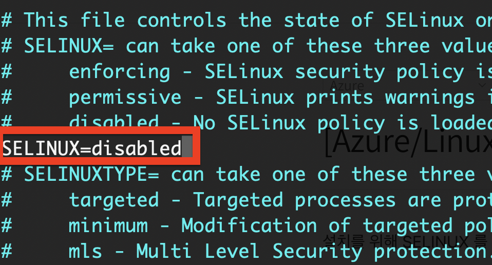 1. 설치를 위해 SELINUX 를 해제하고 시작