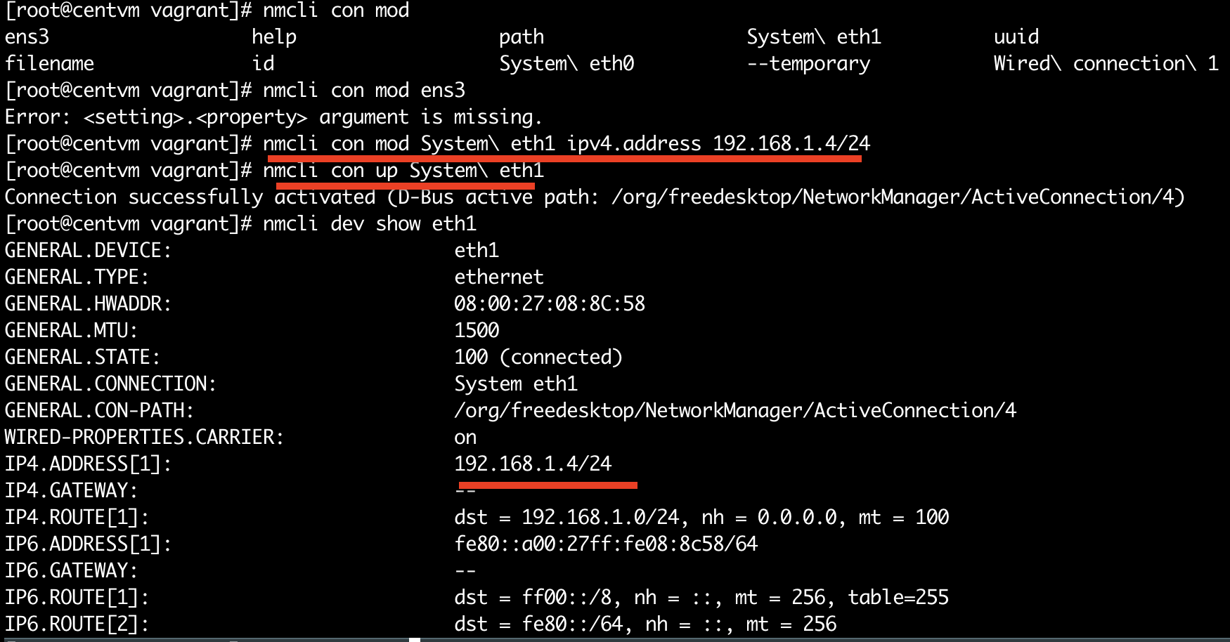 nmcli con up 을 통해 변경 확인