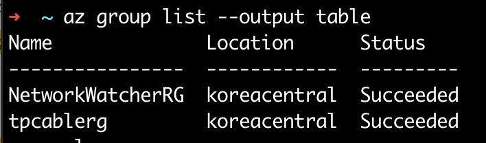 ➜ ~ az group create -g tpcablerg -l koreacentral