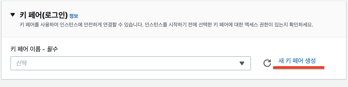 4. key_pair 생성을한다. 생성한 키가 맞아야 접속가능 하나의 키를 계속 사용 할 수 있음 Mac에서는 .pem 파일을 다운 받는다.
