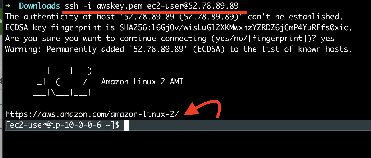 ssh -i [key_file] ec2-user@IP 와 같은 형식으로 로그인한다.