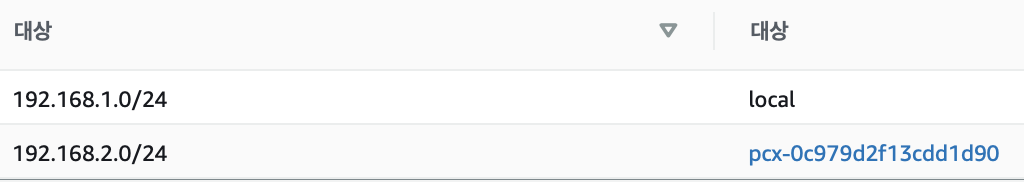 VPC1 subnet2에 대한 피어링 라우팅만 설정