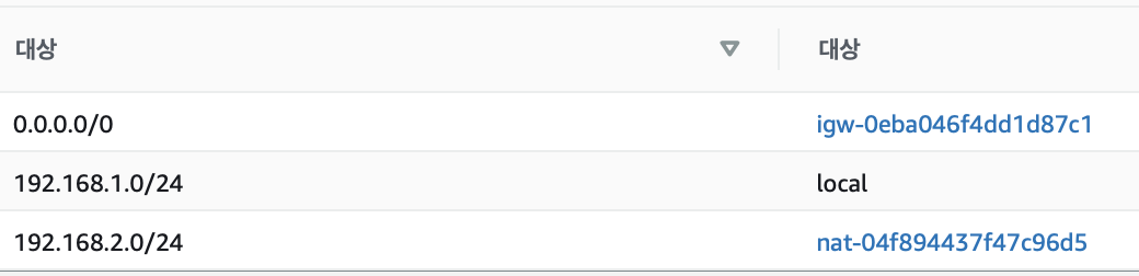 목적지 EC2 통신을 위해서는 NAT Gateway 로 라우팅