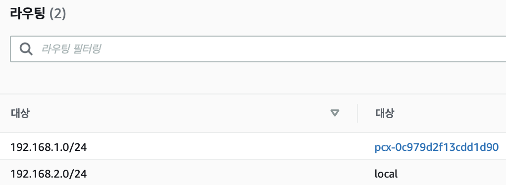 VPC1 subnet2에 대한 피어링 라우팅만 설정