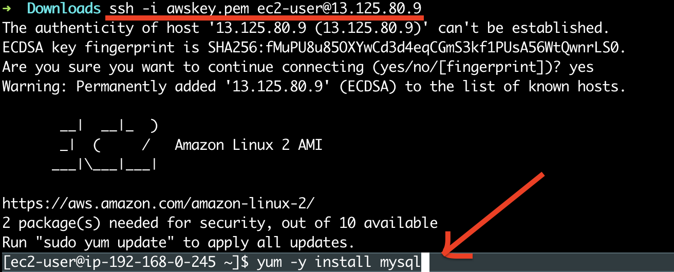 5. EC2접속, mysql client 다운로드 yum -y install mysql