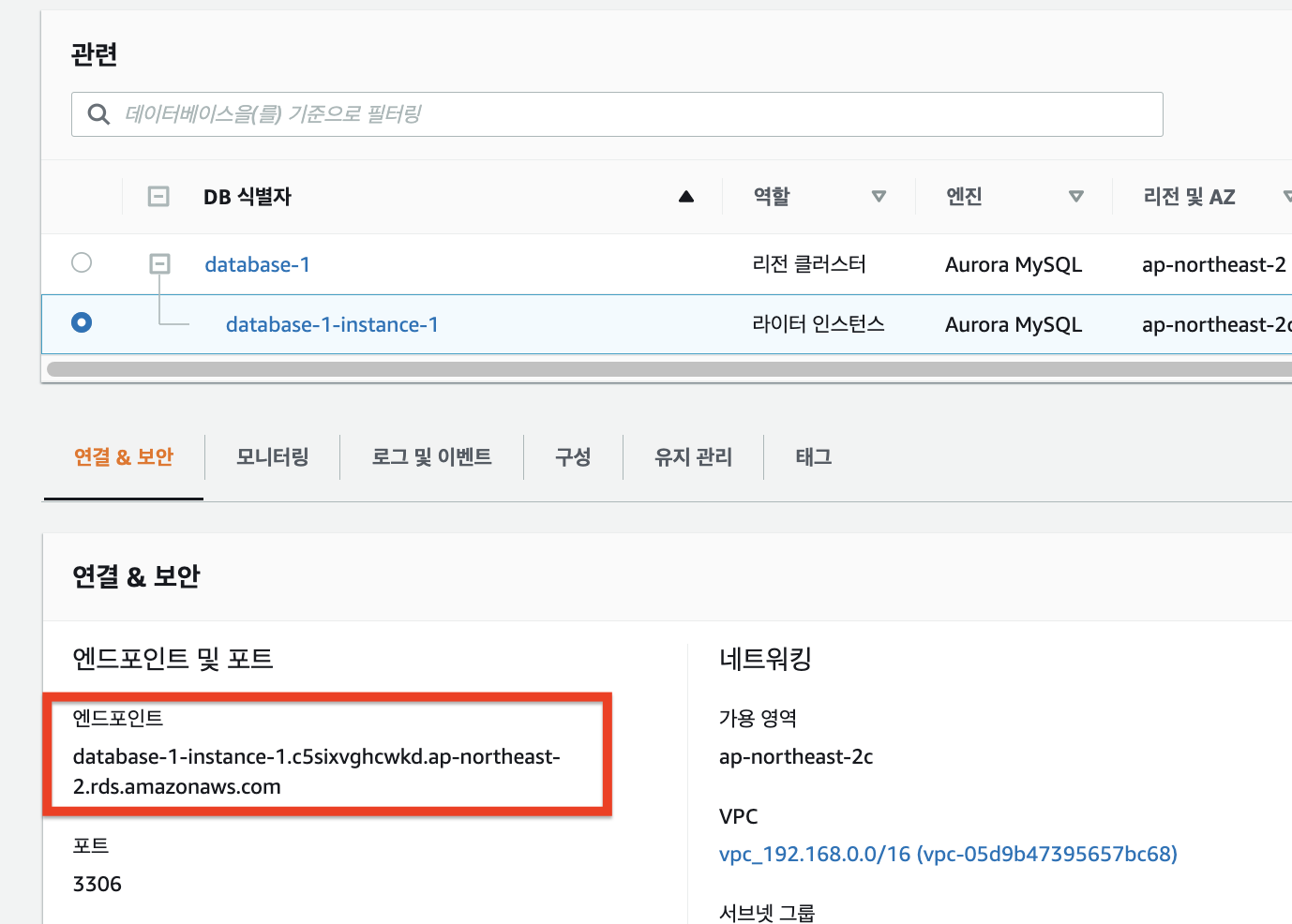 6. aurora db 접속 정보확인