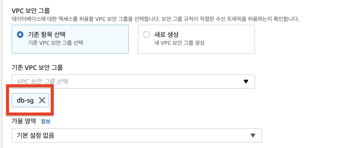 3. 미리 생성한 db-sg선택