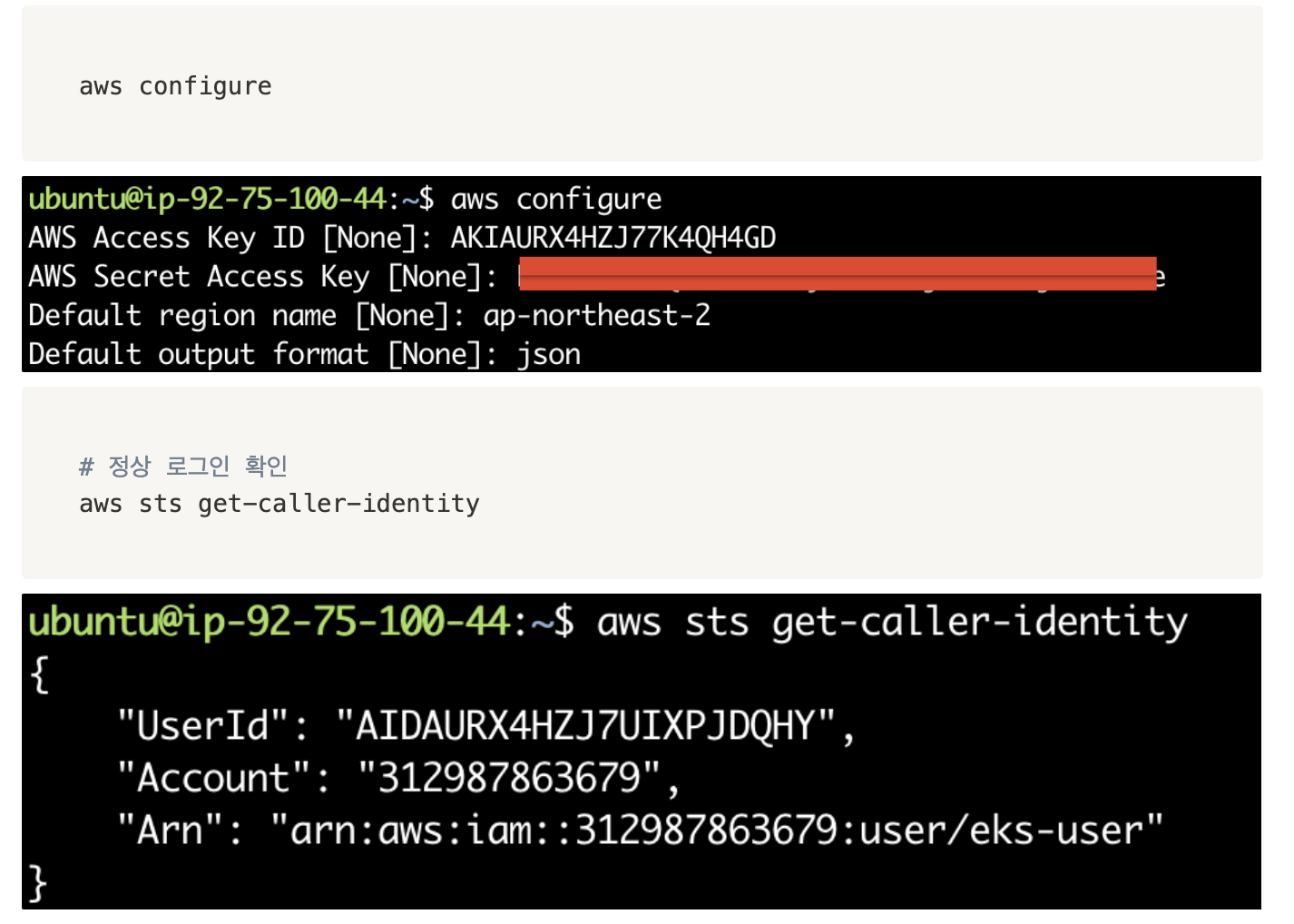 - IAM에 관리자 권한을 할당해 관리 EC2에서 EKS관리
