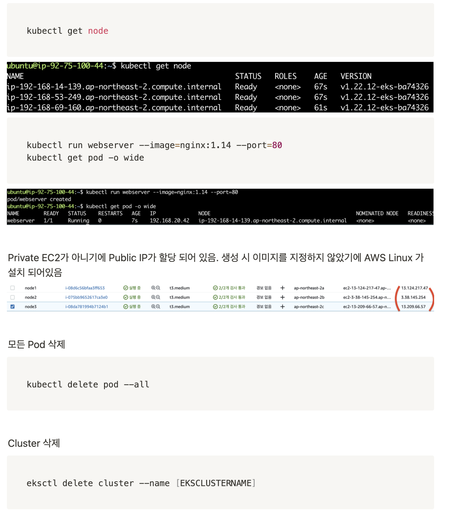 --ssh-public-key awskey \\ # node 에 접속 할 key